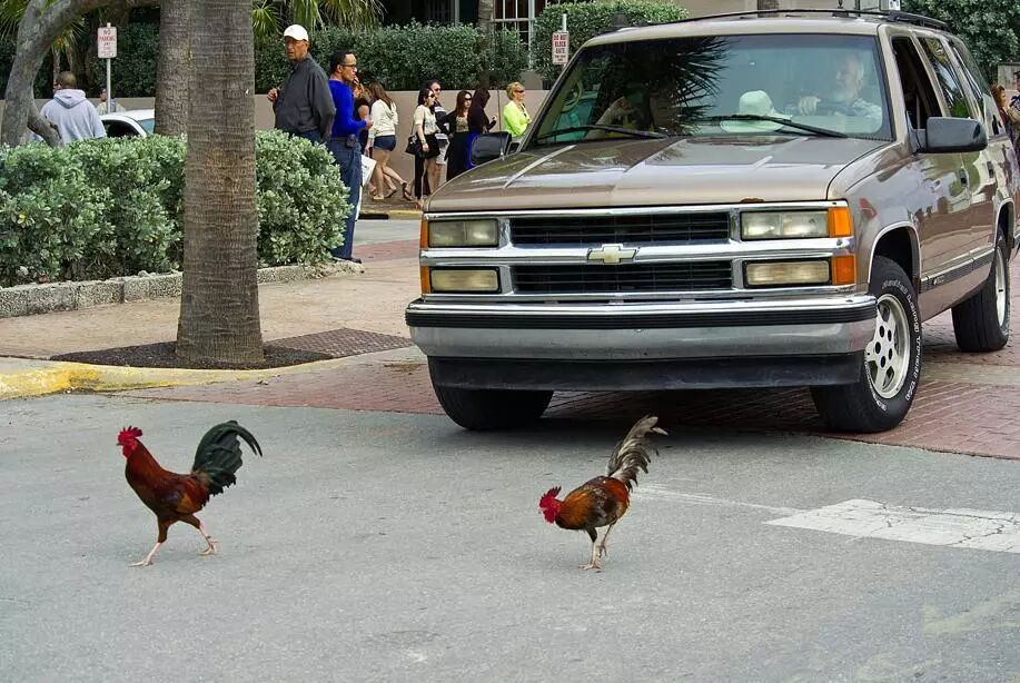 你见过大摇大摆过马路的鸡吗?