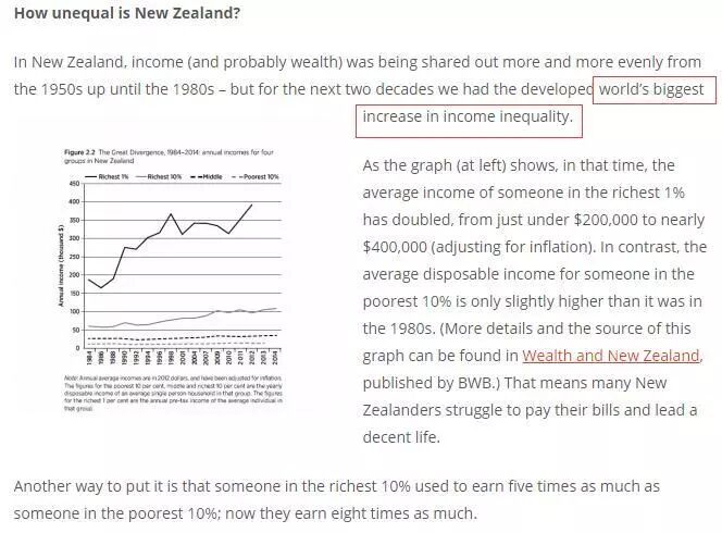 根据新西兰社会不平等研究协会的报告,在过去的20年中,新西兰贫富间差距拉大的程度,在世界范围都算猛的。