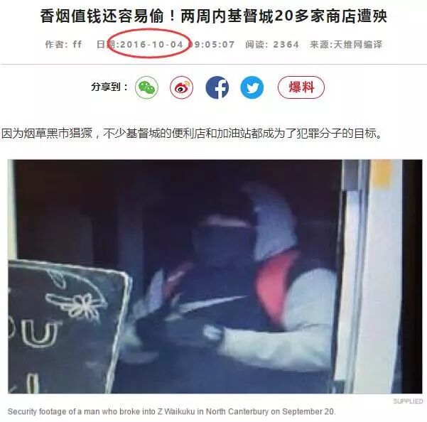 2018年5月,基督城一家24小时便利店的华人店主遭遇了两名持刀年轻劫匪。