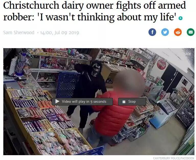 基督城一位便利店店主赤手勇斗持枪歹徒,