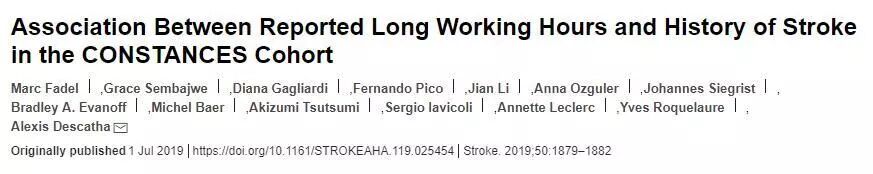 一项最新的调查研究显示,如果你一天工作时长超过10小时以上,一年中这样工作的强度超过50天,那么你中风的几率将增加29%;