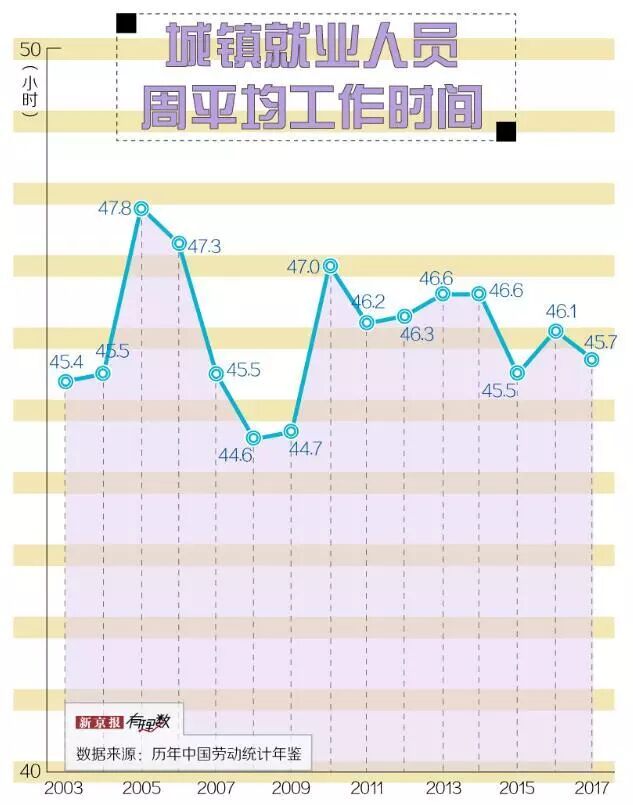 梳理历年的《中国劳动统计年鉴》你可以发现,近十几年来,中国城镇就业人员周平均工作时间,根本没有低于44小时的,