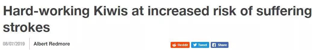 日前,新西兰主流媒体Newhub就提醒民众,未来10年里,新西兰全职劳动者的中风几率有可能提高40%。