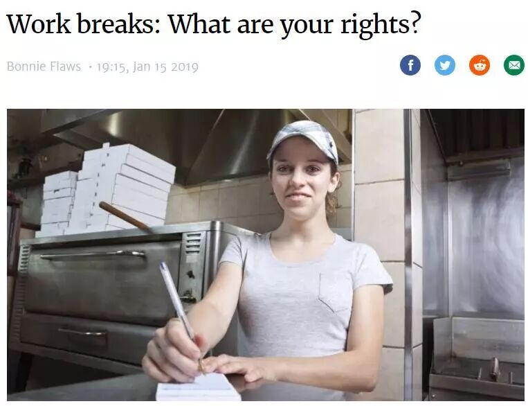 这份今年5月生效的法律规定,新西兰雇主必须向雇员提供工间休息。