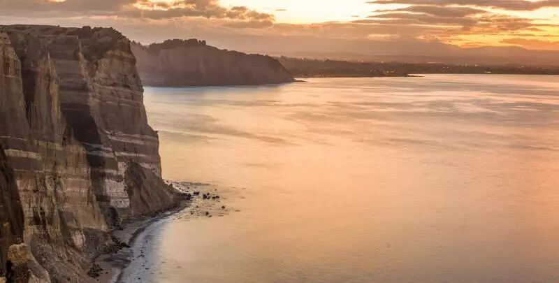 1769年,Cook船长航行到附近时,岛上的毛利人看到船上有一位12岁的塔希提男孩,便冲上去营救,但没想到却被船队视为劫匪,还遭到炮轰。这个几百年前的误会,让这个无名的岬角,从此有了自己的名字——Cape Kidnappers。