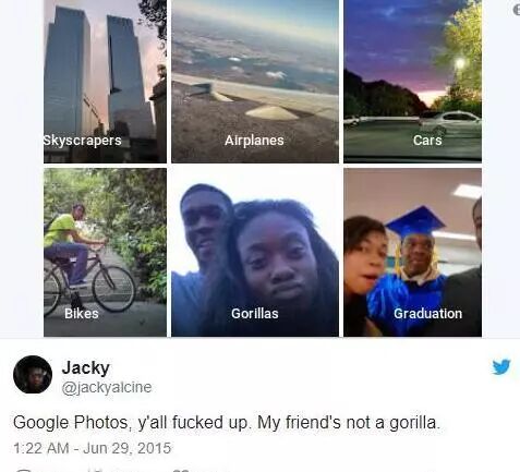 Google的人脸自动识别系统,也被网友吐槽过,对黑人的不友好,