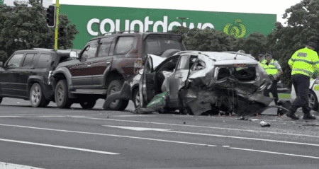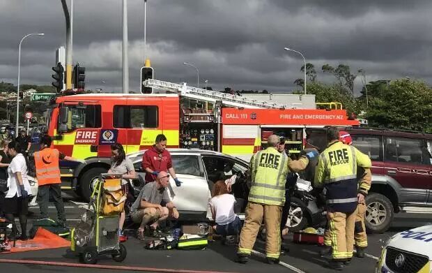 当时,3辆车正停在Botany Rd 和Ti Rakau Dr的路口等待红灯
