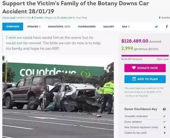 之后,Alan的朋友为逝者及其家人设立了捐款页面,短短一天之内,就收到了超过10万纽币的捐款。