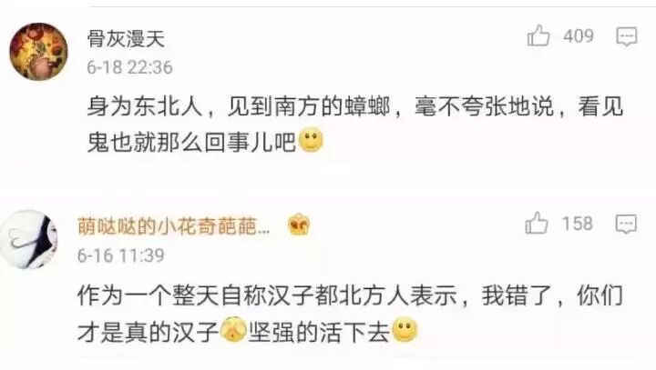 说北方同学去南方读书,1米8的大汉子,在麻将块儿大小,还可以傲然飞翔的蟑螂面前,吓得屁滚尿流。