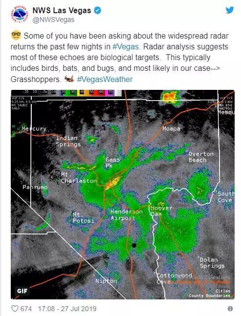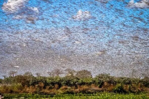美国气象局甚至发了推特,称大量的蝗虫活动,在太空上都检测出来了……