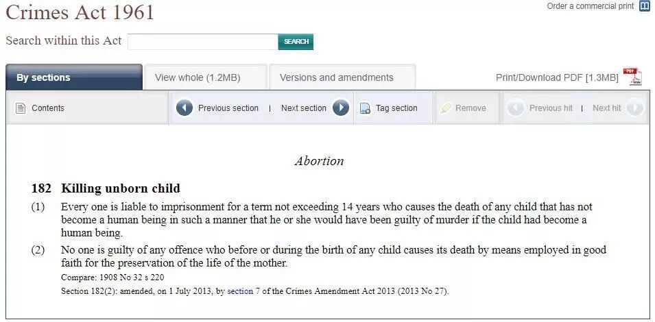 不信,你去查一下,新西兰刑事犯罪法1961(Crimes Act 1961),仍然将“杀害未出生婴儿”视为违法。
