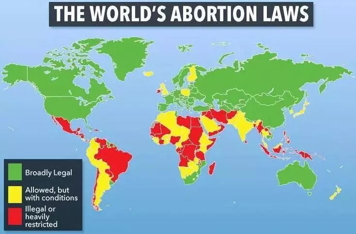 将堕胎限制越收越紧的美国似乎是和全人类“逆向而上”,但仔细看看,迄今为止,世界上还是有许多国家,仍然对女性堕胎,进行着各种各样的有罪化。