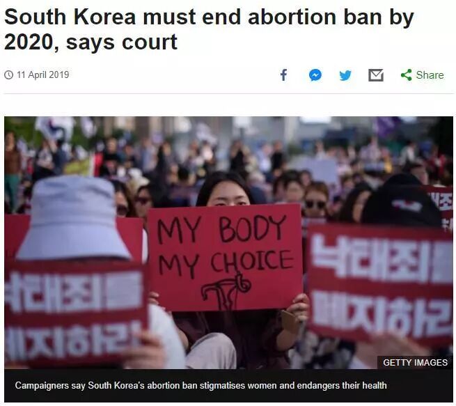 今年4月,在无数次抗议之后,在女性们一次又一次走上街头之后,韩国宪法法院终于裁定,已经推行了70年的禁止堕胎法,将在2020年被废除。
