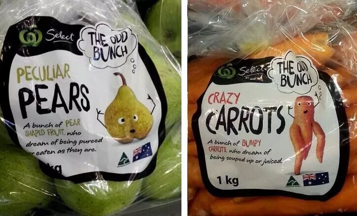 如今的大部分Countdown超市里,你都能够找到一些已被包好的,上面印着The Odd Bunch的蔬果袋,