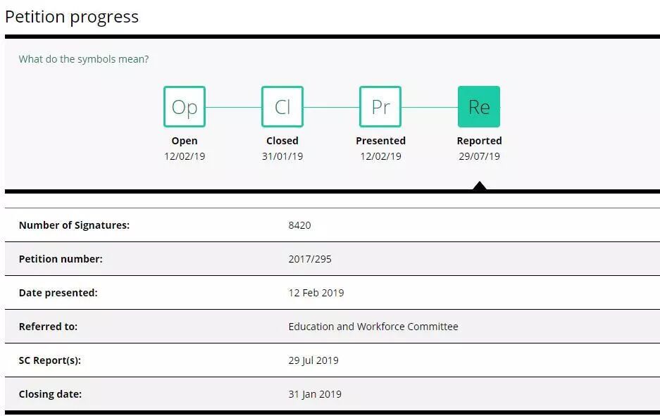 该请愿在2019年1月31日关闭,截至关闭前,收获签字8420份。