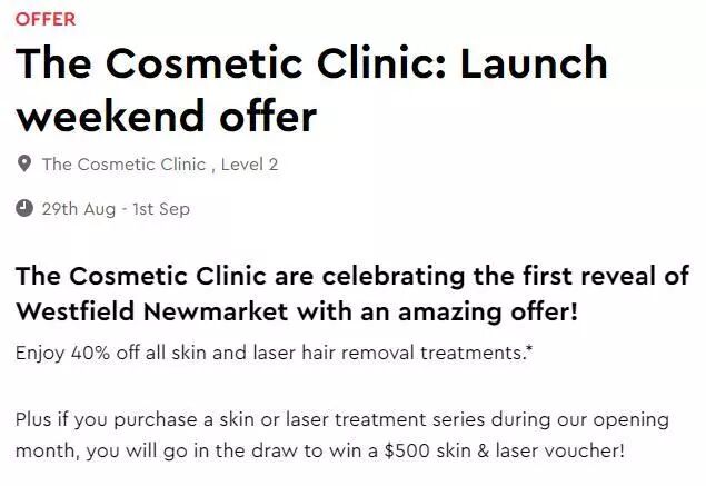 位于二楼的美容店Cosmetic Clinic在本周末为消费者offer了不错的优惠: