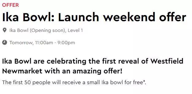Mall内位于一楼的网红餐厅Ika Bowl决定,明日(周五),会给最先到店的50位食客,每人提供免费小份Ika Bowl。