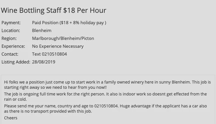 这些短期工除了在果园和农场,还有的在酒庄,包括采摘葡萄、装瓶等工作,以及在旅游景点的短期工。