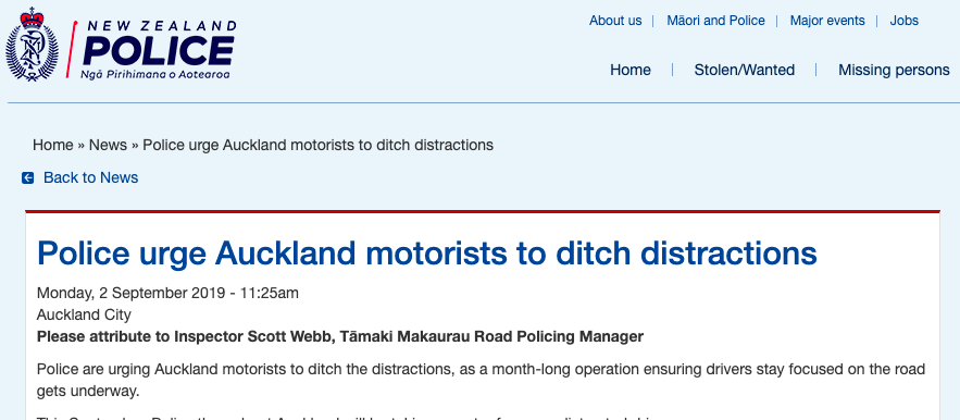 据新西兰警方数据,2018年,新西兰有377人因为交通事故而丧生。到目前为止,仅仅Tāmaki Makaurau就有40人因交通事故失去生命。其中,有很大一部分是因为开车不专注导致的。