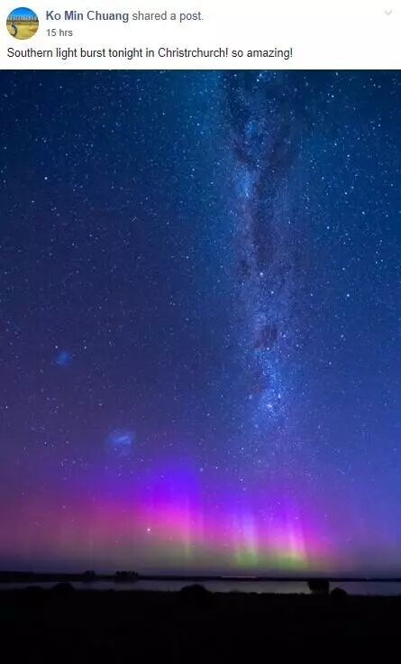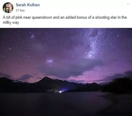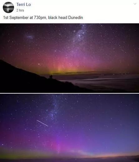 在但尼丁的网友也分享了自己捕捉到的绚丽