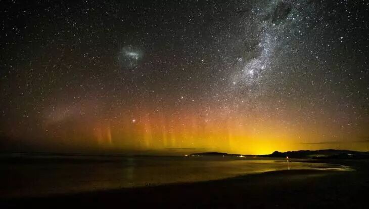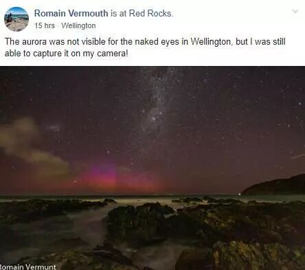 当时正在奥塔格沿海Katiki Beach的游客Tim Jamieson就有幸捕捉到了昨晚天空中的那道其妙光彩: