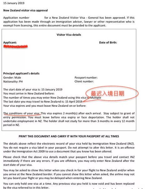 最迟入境日期(该日期前未入境新西兰,签证可能会作废);