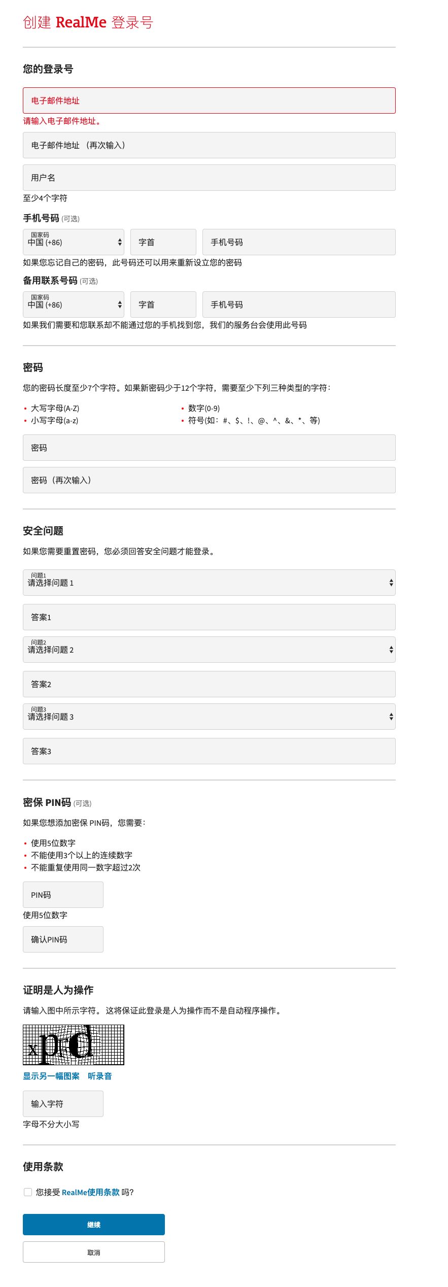 无论申请什么类型的签证,都少不了一个Realme账户,所以第一步就从注册账户开始。