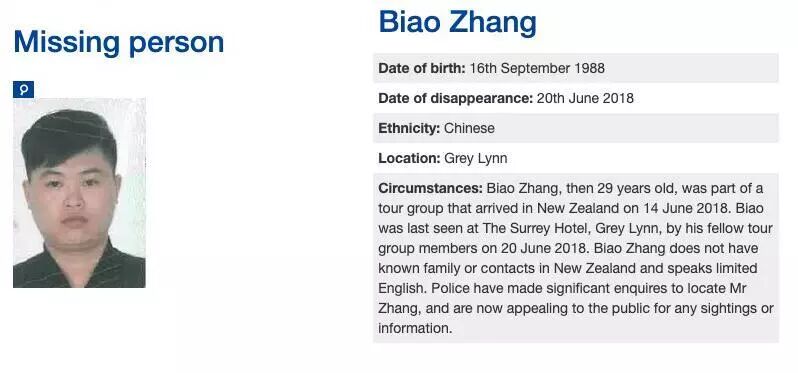 这名叫做张彪的29岁中国男子(今年应该30了),在2018年6月14日跟团来新西兰旅游,