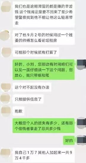 小刘称,他们此次损失数额巨大,四个工友共损失现金约为9万4千纽币,其中,小刘的个人损失约为1万5千纽币。