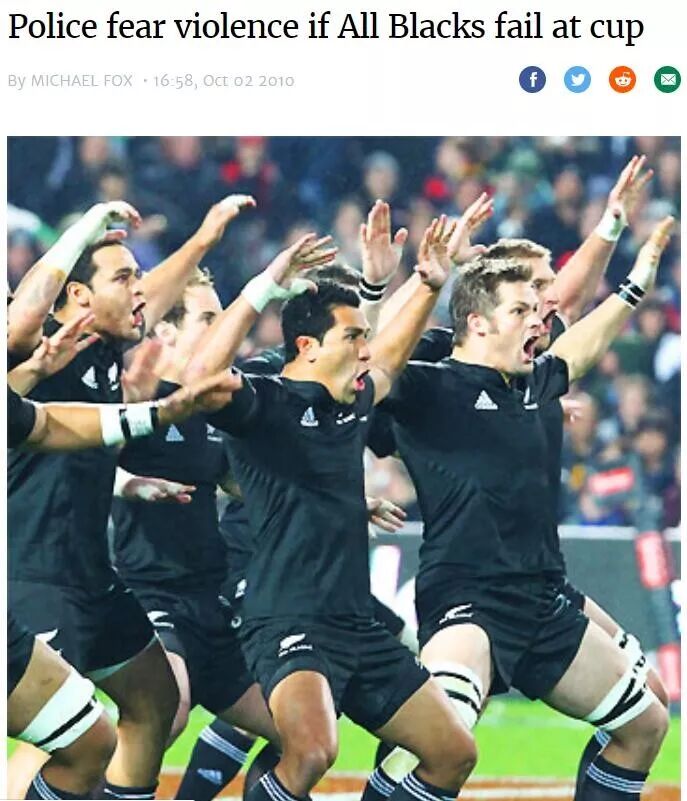 在新西兰有一个流传甚广的说法,说每次全黑队输了,新西兰国内的暴力发生率,就会疯狂上涨……