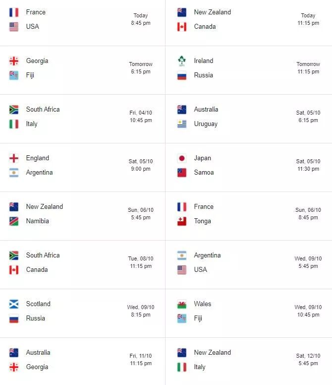 - 10月2日(对,就是今天),新西兰时间晚上11:15,新西兰对加拿大;