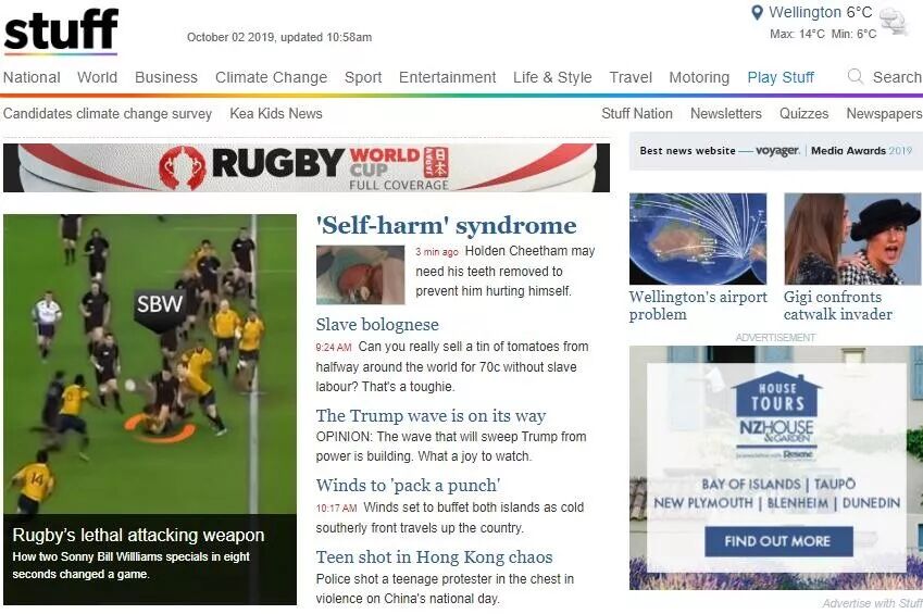 而在9月22日新西兰对南非的首战告捷后,新西兰主流媒体更是满屏尽带Rugby,全天候各方位铺天盖地的报道这届赛事。
