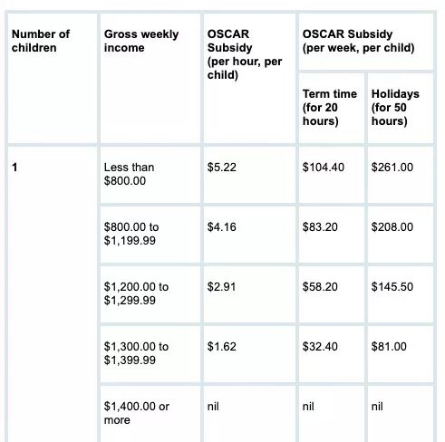 Out of School Care and Recreation (OSCAR) Subsidy 儿童保育补贴与校外看护与娱乐活动补贴,俗称奥斯卡补贴