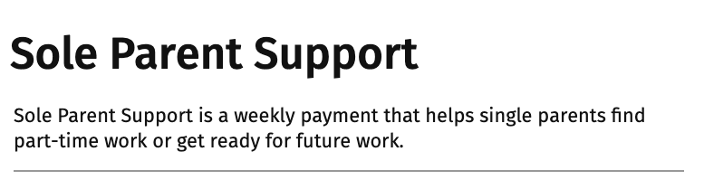 如果申请人年满20,独自抚养一个或多个14岁以下子女,可以申请Sole Parent Support单身父母福利