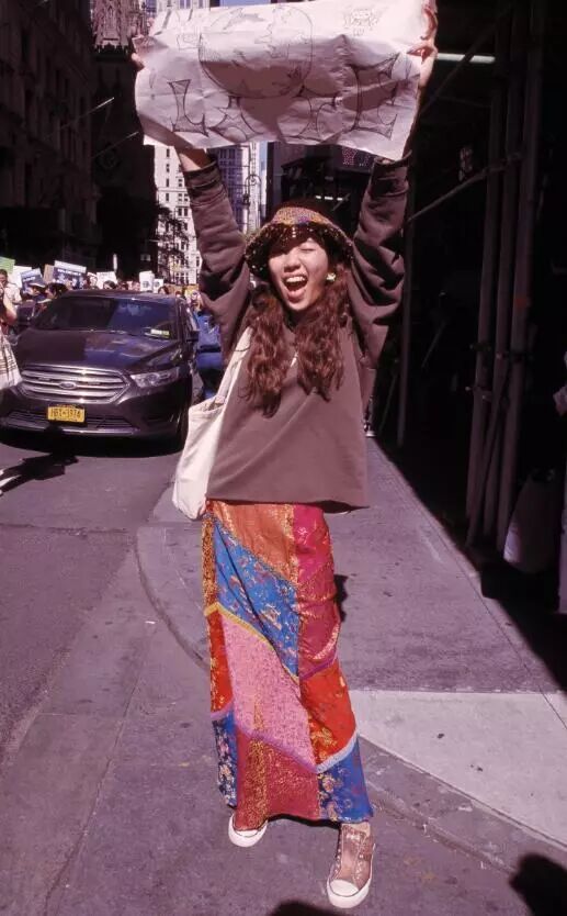 “我喜欢通过fashion来表达我自己,我喜欢从头到脚都五颜六色,引人注目,我比较喜欢对衣服重新利用,自己手工添加一些新装饰,我试着不去支持快时尚,因为我很抵触它们背后的价值观。”