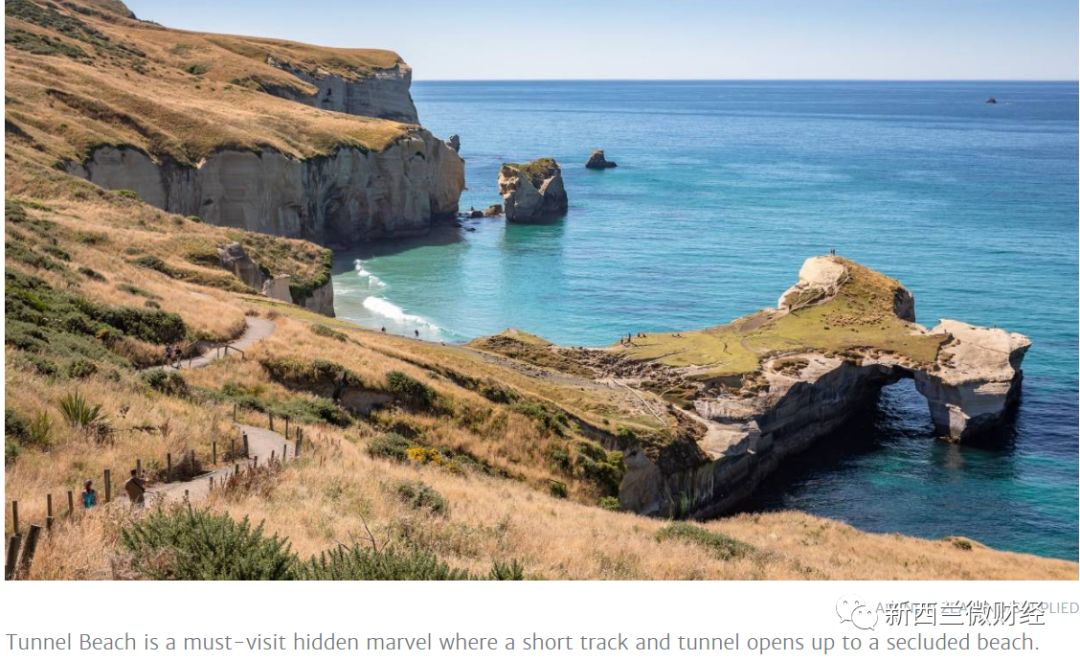 但尼丁的Tunnel Beach,每年有超过10万人来访,此处最出名的不是沙滩,而是沙滩旁边很有视觉冲击力的高崖峭壁。