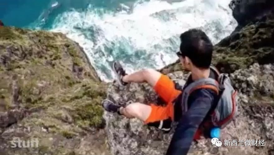 新西兰人最近又发现了一个游客来“玩命”的新姿势——总有人爬到风很大的崖顶上去拍照。