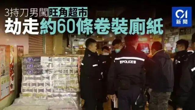 甚至有人为了厕纸,至不惜走上了犯罪的道路,比如:3名劫匪打劫旺角一间超市,共劫走60条,约600卷厕纸。