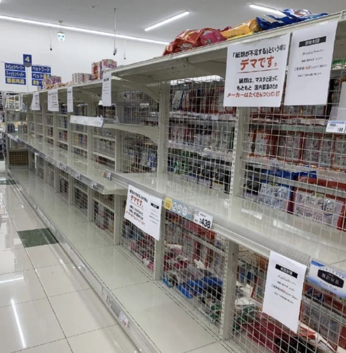在日本发生疫情后,第一时间也是厕纸在超市中供不应求。