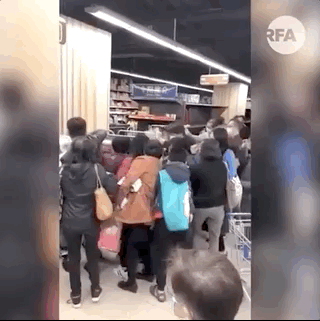 在香港的超市里,也出现了这一幕,老老少少都开始了抢厕纸: