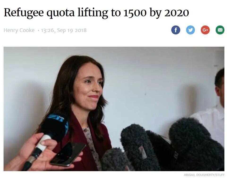 2016年之前,新西兰难民配额在750保持了30年,目前远远落后于许多其他西方国家。联合政府于2018年9月决定再次将配额提高,将每年需要的难民人数从1000名增加到1500名,该决定也将于7月开始实行。