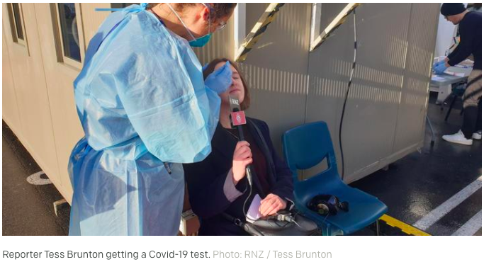 RNZ的记者也进行了检测。护士Jess和Sarah用一根看起来有点像长牙线刷的棉签进行了鼻腔检测。鼻孔被长棉签擦拭,这是一种奇怪的感觉,在15秒内就擦拭完毕。不舒服,但是不疼。