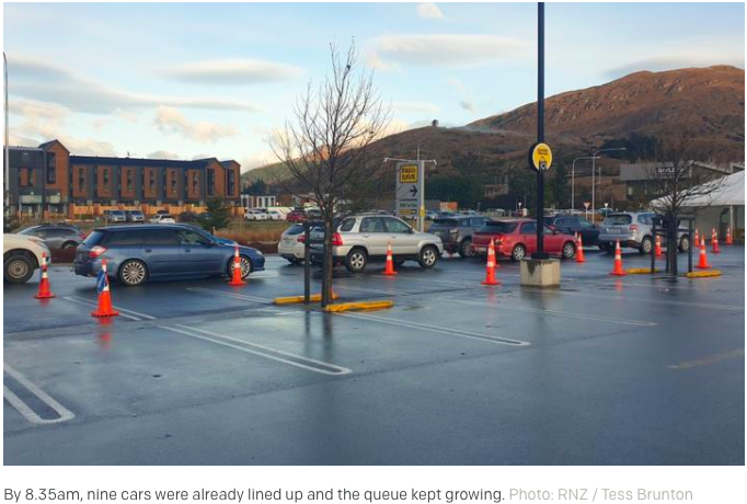 昨天,WellSouth 初级卫生机构在皇后镇Frankton的Pak'nSave停车场组织了一个临时的drive-thru测试站点,以检查该地区是否有社区传播的迹象。