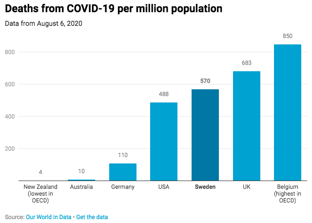 总体而言,与奉行抑制战略的欧洲和北美高收入国家相比,这些措施实现了较低的病例数和死亡人数。新西兰也是经合组织中Covid-19死亡率最低的国家。