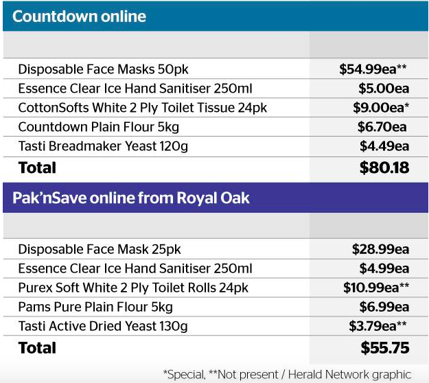 媒体甚至将这些需要出现在家庭应急包中的一些物品品类和各超市的价格列了出来——敦促你赶紧行动。