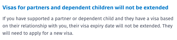 基于7月可延期6个月的雇主协助工签的配偶和子女的签证,如果在8月17日之后到期,也将被一起延期,延长时间与雇主协助工签持有者的到期时间一致。