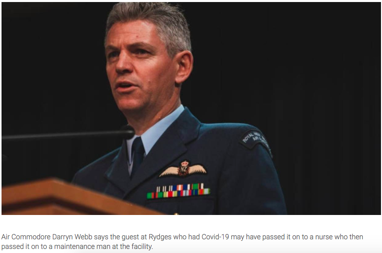 昨天(8月19日),空军准将Darryn Webb表示,Rydges Hotel那位感染新冠的美国回来的住客可能把病毒传给了一名护士,后者又把病毒传给了这名维修人员。