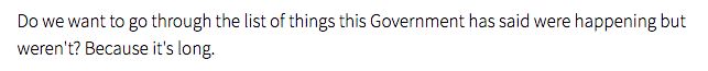 她说:我们是否想回顾一下政府说过正在发生、但没有发生的事情?因为这个list太长了!