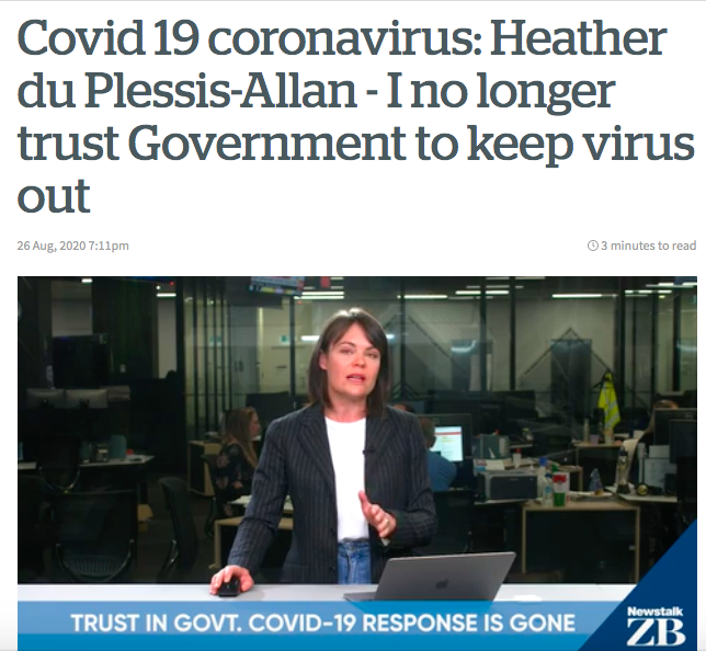 得知很多人并没有在第3天接受检测,Newstalk ZB主持人、NZ Herald专栏作家Heather du Plessis-Allan都忍不住吐槽:我不再相信政府能把病毒抵挡在外!