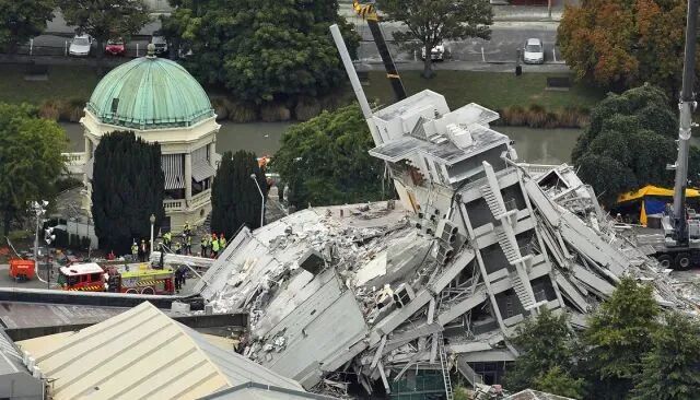 由于震源深度距离地表仅有4公里,属于浅源地震,而且余震持续很久,震中就位于Port Hills下方,直接命中整个城市。造成建筑物倒塌,道路扭曲,185人丧生。